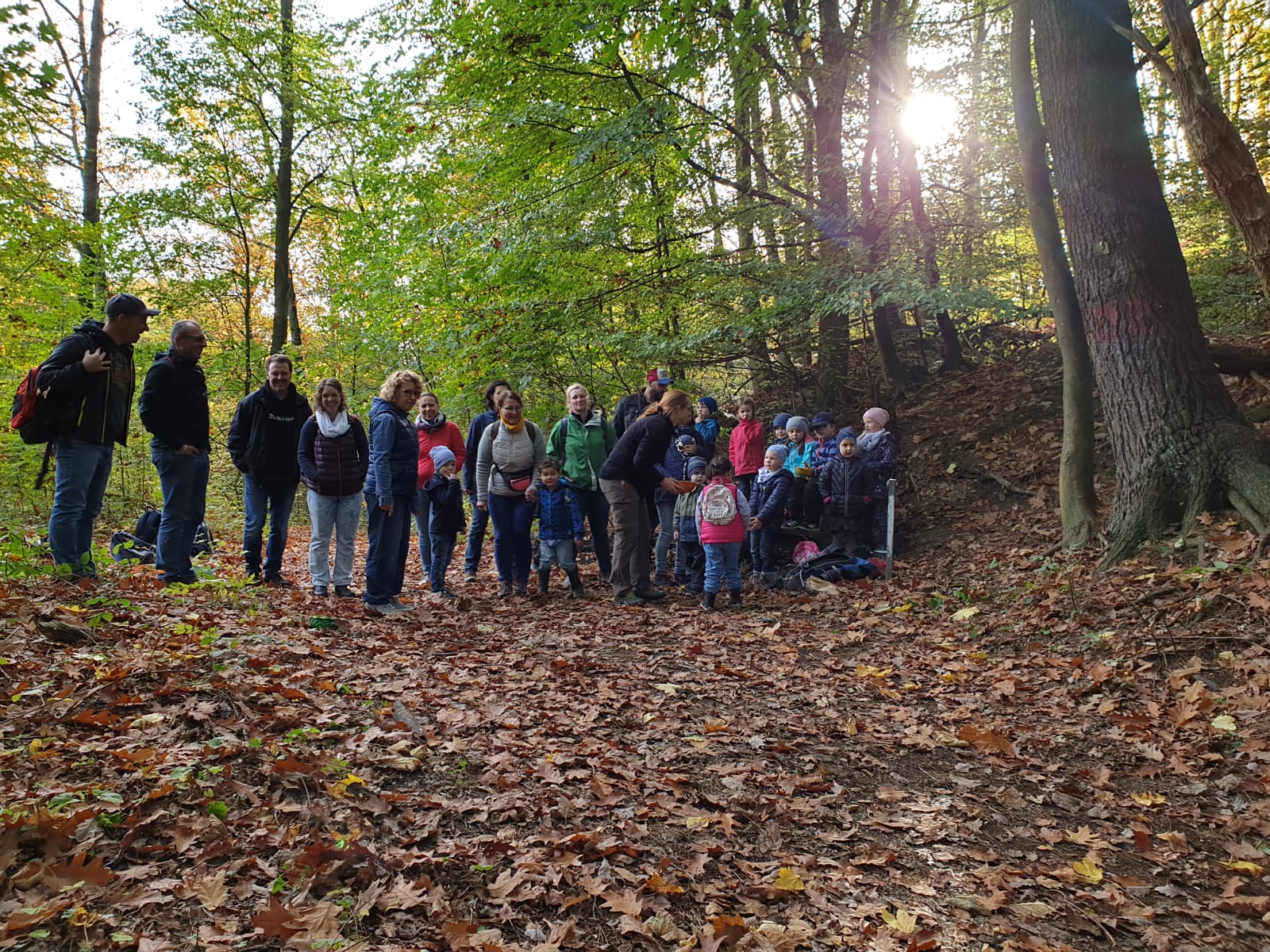 BeschreibungAn einem Samstagvormittag durfte ich mich bei bestem Wetter mit 15 Kindern aus dem Familienzentrum Kinderarche im Alter zwischen 3 und 6 Jahren und ihren Familien treffen, um gemeinsam mit ihnen eine herbstlich, bunte Zeit zu verbringen. Im Mittelpunkt stand der Igel und sein Treiben im Jahresverlauf. Die Kinder konnten sich an einem Igelpräparat selber von den pieksigen Stacheln überzeugen und liefen wie die Igelkinder gekonnt unter dem großen Schwungtuch her. Im Wald suchten wir bunte Bilder, die sich an den Bäumen versteckten und legten die dargestellte Igelgeschichte im Anschluss in die richtige Reihenfolge. Nach einigen Spielen im Wald und dem wohlverdientem Picknick, haben alle Teilnehmer in den Räumlichkeiten der Kinderarche eigene Igelhotels gebaut. Sogar ein echtes Igelkind namens „Nucki“ besuchte die Kinder. Die fertigen Holzbausätze wurden nach ihrer Fertigstellung noch bunt bemalt. Und nun heißt es geduldig sein und warten, ob in diesem Jahr noch ein Igel in den tollen Hotels eincheckt.